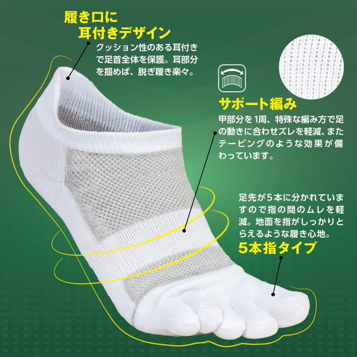 ●5本指ソックスで捻挫、転倒の防止に。運動時や日常生活でも効果を発揮。