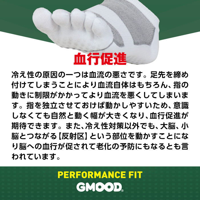 足先が5本に分かれていますので指の間のムレを軽減。地面を指がしっかりとらえるような履き心地。
