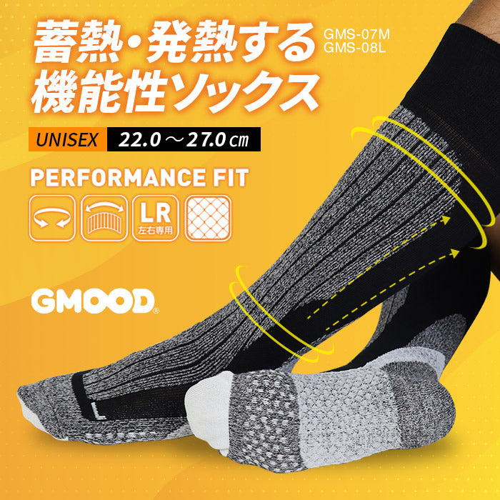 ジームード ロング丈 着圧 蓄熱 発熱 ソックス 機能性 膝下 靴下 サポート 普段使い ビジネス 通学 通勤 スポーツ スキー 冬 あったか グレー ユニセックス メンズ レディース ジュニア 男女兼用 GMOOD