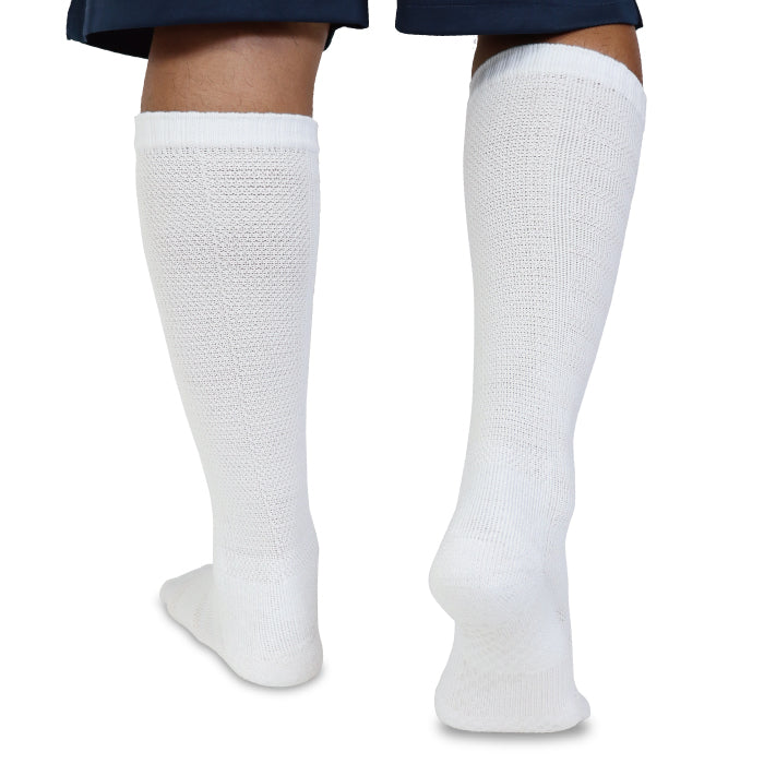 甲部分に通気性の良いメッシュ編みを採用し、蒸れを軽減。吸汗速乾で1日中サラッと快適。