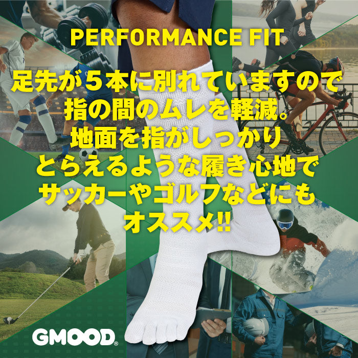 【お得な2足組】ジームード クルー丈 5本指ソックス ベアフット 機能性 靴下 膝下 着圧 吸汗速乾 消臭 サポート 足裏滑り止め スポーツ ビジネス 通学 通勤 シンプル 黒 白 ブラック ホワイト ユニセックス メンズ レディース ジュニア 男女兼用 GMOOD