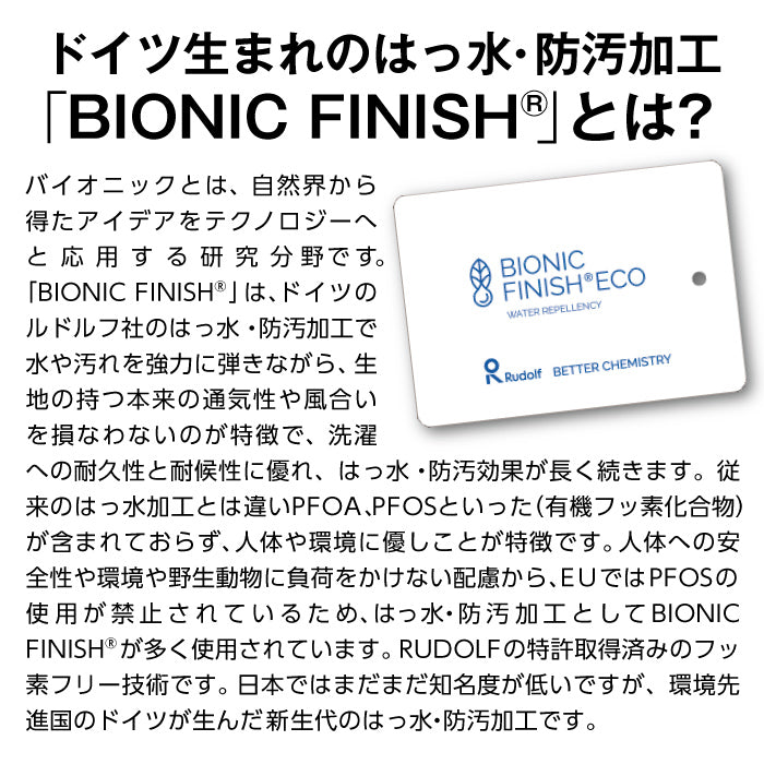 アッパーにドイツのルドルフ社が開発した、「BIONIC FINISH」を施しています。