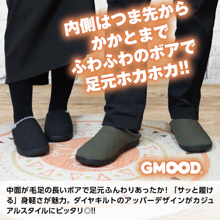 ジームード あったか ボアサンダル サーモ スリッパ つっかけ ルームシューズ オフィス履き ウォーム ウィンター はっ水 防汚 シンプル ユニセックス メンズ レディース 男女兼用 フリース 起毛 軽量 持ち運び 秋 冬 お揃い 散歩 お出掛け ワンマイル GMOOD