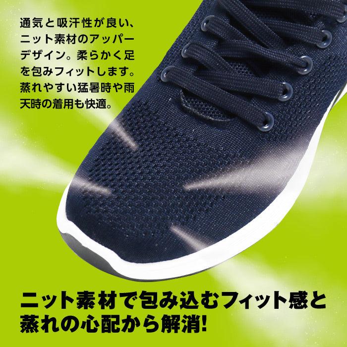 通気と吸汗性が良い、ニット素材のアッパーデザイン。柔らかく足を包みフィットします。