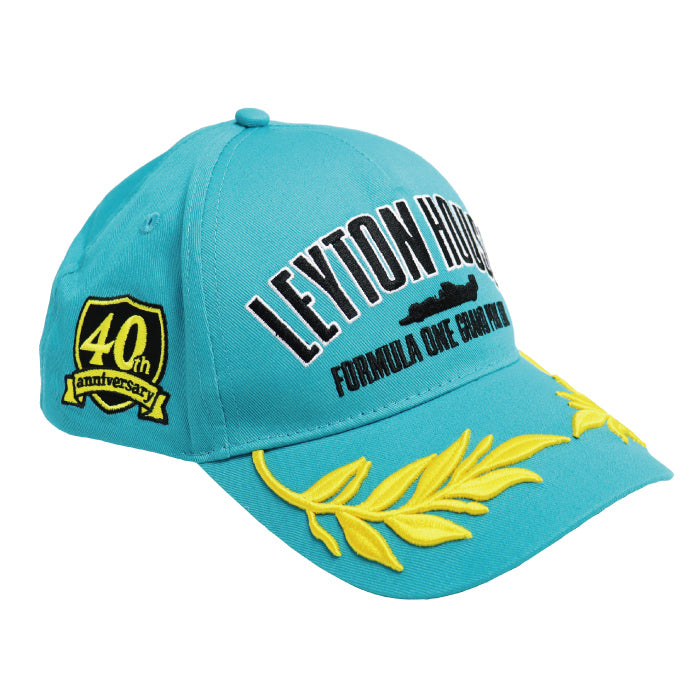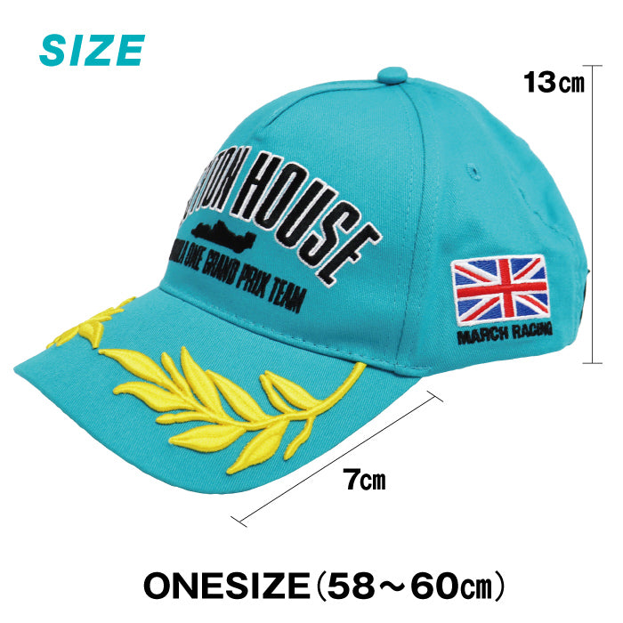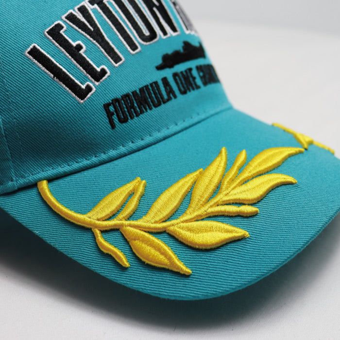 フロントには、レイトンハウスのレーシングロゴ、ツバ部分には月桂樹の豪華な立体刺繍。